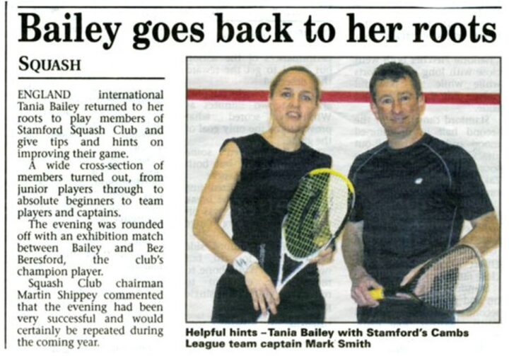 Read MoreAs the article says,England International, Tania Bailey, returned to her roots to play members of Stamford Squash Club and give tips and hints on improving their game.A wide cross-section of
